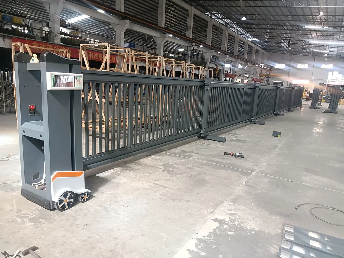 We recommend our QG-CP-DH25M telescopic sliding gate to our customers. A single sliding gate can be up to 50 meters long, and two sliding gates can be up to 100 meters long.
